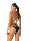 El Top de Bikini Kaya Black combina un diseño clásico tipo triángulo con un acabado contemporáneo. Sus tiras ajustables permiten un calce personalizado, mientras el contraste en tono crudo realza su silueta minimalista. Una pieza esencial que equilibra elegancia y funcionalidad, perfecta para cualquier día de sol.
