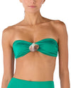 El Top de Bikini Canela Bottle es un diseño bandeau strapless con concha nácar en el centro. Su ligero fruncido realza la forma mientras el amarre posterior permite ajustar el fit. Un esencial de líneas depuradas y carácter definido.