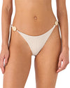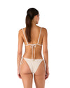 El Panty Lily Shell Ivory presenta amarres laterales ajustables que permiten personalizar el fit. Su textura acanalada y silueta limpia mantienen equilibrio y comodidad.