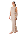 El Pantalón Melia Mimosa presenta una silueta amplia y fluida que aporta movimiento y ligereza. Sus laterales abiertos con conchas decorativas crean un detalle distintivo que eleva el diseño con un acento artesanal. La caída recta estiliza la figura y aporta equilibrio, ideal para un conjunto sofisticado y versátil.