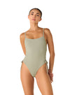 El Vestido de Baño Entero Isla Shell Sage combina estructura y ligereza en una silueta limpia. Su escote recto y espalda descubierta crean un equilibrio entre sencillez y detalle. Las tiras ajustables permiten un calce perfecto, mientras la textura acanalada aporta profundidad y un toque moderno. Una pieza cómoda y sofisticada que realza la figura con naturalidad.
