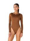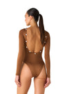 El Vestido de Baño Entero Nara Espresso redefine la elegancia minimalista con una silueta de manga larga y detalles sutiles. Confeccionado en tela elástica de acabado mate, presenta una espalda descubierta decorada con perlas que aportan un toque artesanal característico de Palmacea. Su tono cálido y su diseño limpio lo convierten en una pieza sofisticada y funcional para el sol o el resort.