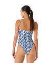 – Escote recto – Concha nácar central – Tiras ajustables – Cobertura media posterior – Silueta estructurada
