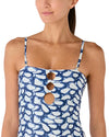 El Vestido de Baño Entero Cassia Ostra presenta una silueta definida con escote recto y tiras delgadas ajustables. Las aberturas frontales se conectan a través de concha nácar central, creando un punto focal distintivo que aporta carácter al diseño. Una pieza pensada para equilibrar estructura y detalle con sofisticación.