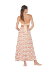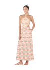 El Vestido Largo Cuarzo Ámbar es una prenda elegante y fresca, perfecta para los días de verano. Su silueta larga y fluida realza la figura, mientras que el amarre al cuello y la espalda descubierta aportan un toque sofisticado y femenino. Su estampado geométrico en tonos cálidos evoca la energía del sol y la naturaleza, ideal para llevar del día a la noche.