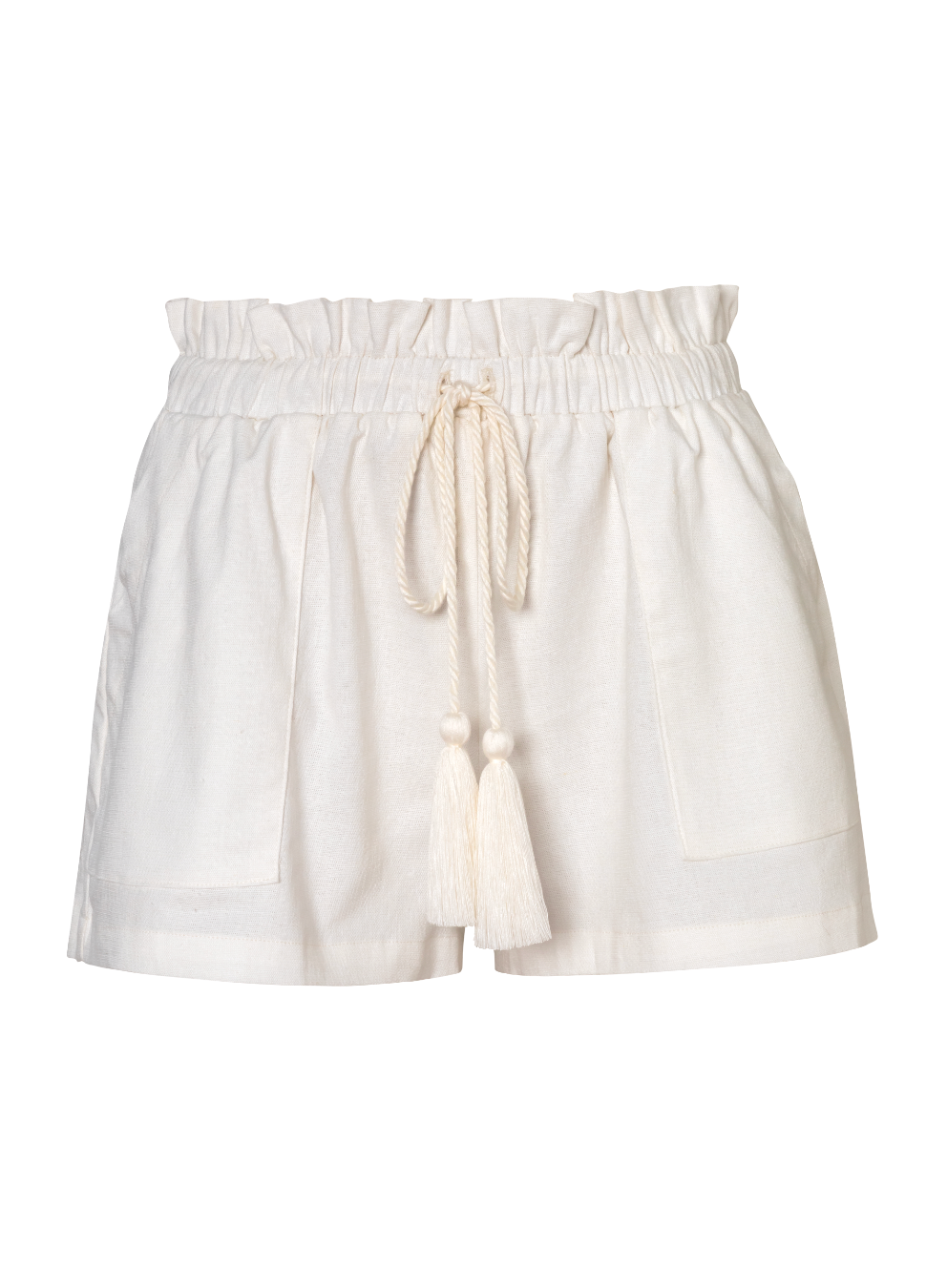 El Short Nair Linen Ivory es una pieza fresca y cómoda, ideal para climas cálidos y planes relajados. Su silueta corta y fluida se complementa con una pretina elástica y ajuste con cordón, ofreciendo un fit práctico y versátil para el día a día.