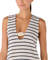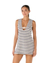 El Vestido Ankara Canaria presenta una silueta corta y amplia que aporta movimiento, frescura y comodidad. Su escote en V profundo crea una línea favorecedora que estiliza la figura, mientras que su textura tejida a rayas añade estructura sin perder ligereza.
